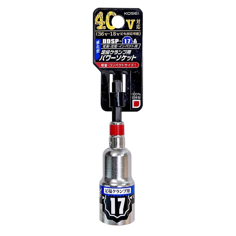 | 注意事項 | ・電動ドリルはクラッチ付、またはインパクトドライバーをご使用ください。 ・ソケットビットの取り付け、交換は確実に行ってください。 ・工具の使用目的以外には使用しないで下さい。 ・破損の恐れがありますので、ボルトやナットに対しては確実に差し込んでからご使用下さい。 |