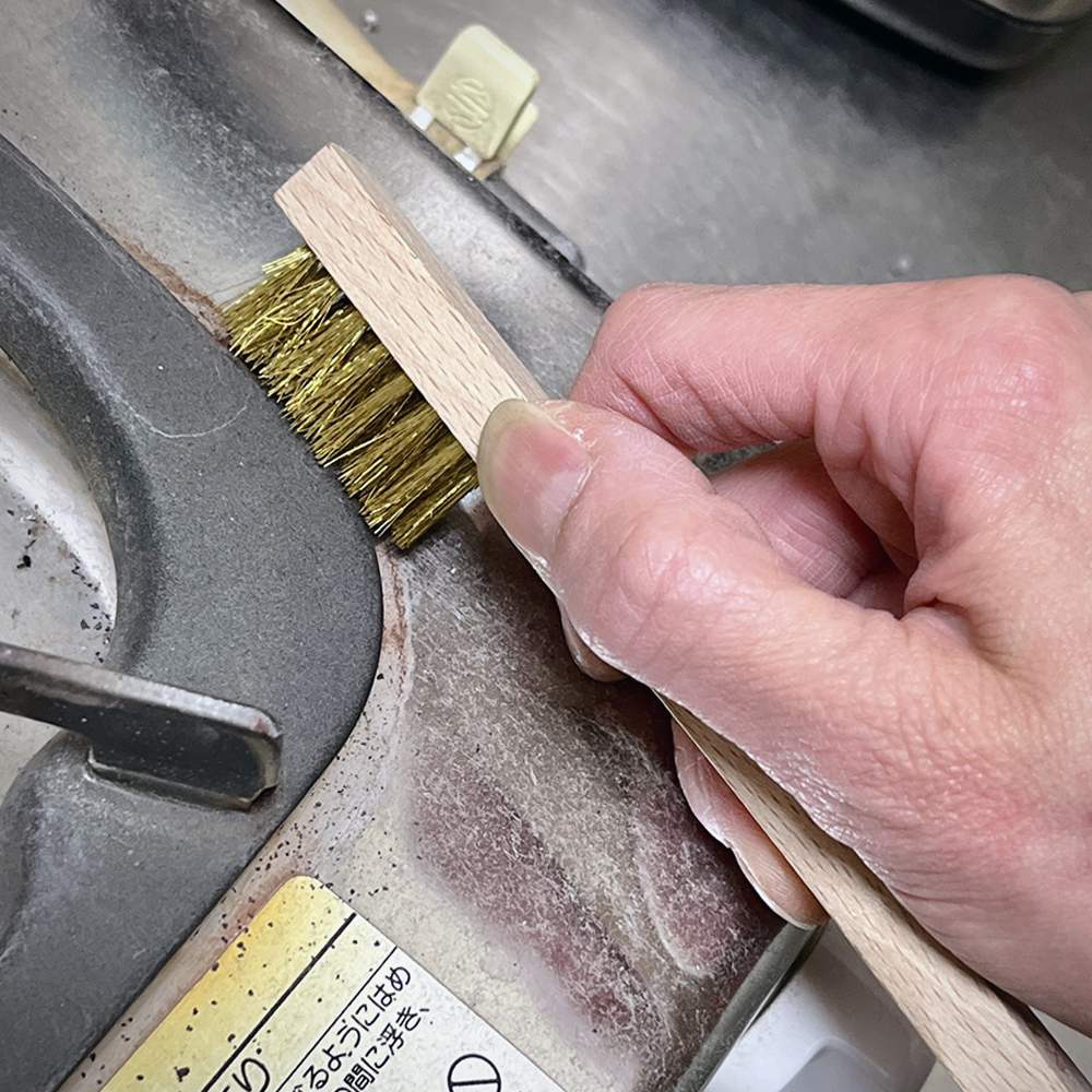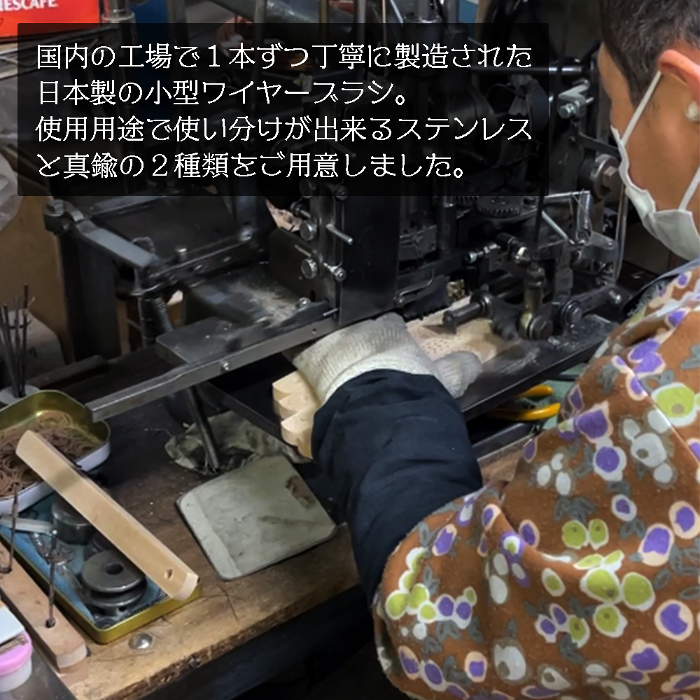 ●優しい当たりで対象を傷つけにくい真鍮ブラシと、頑固な汚れ落としに対応するステンレスブラシの2種類を用意しました。