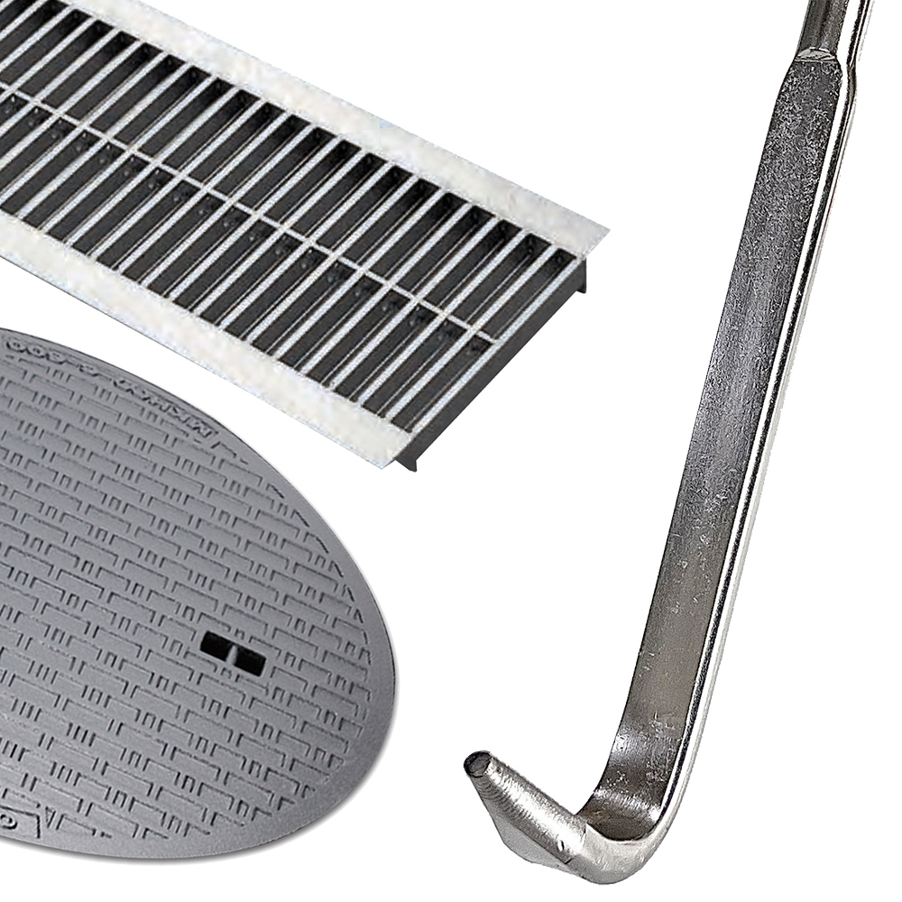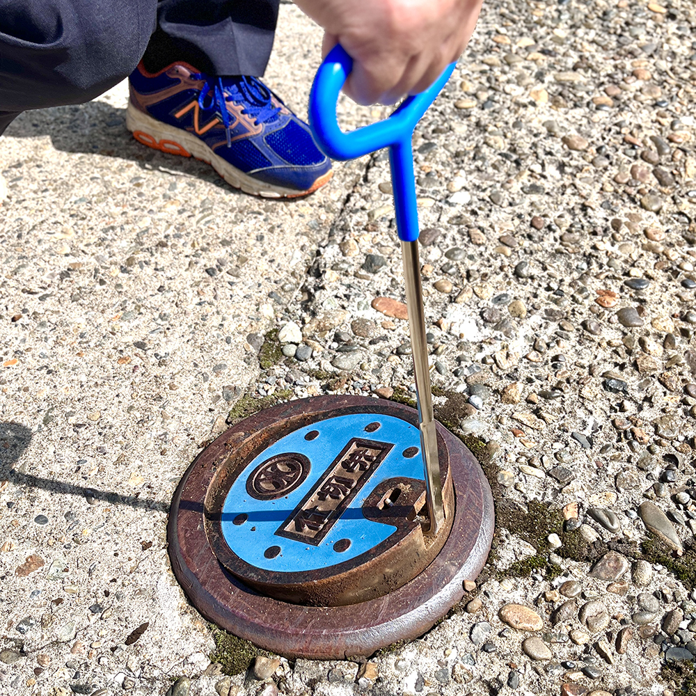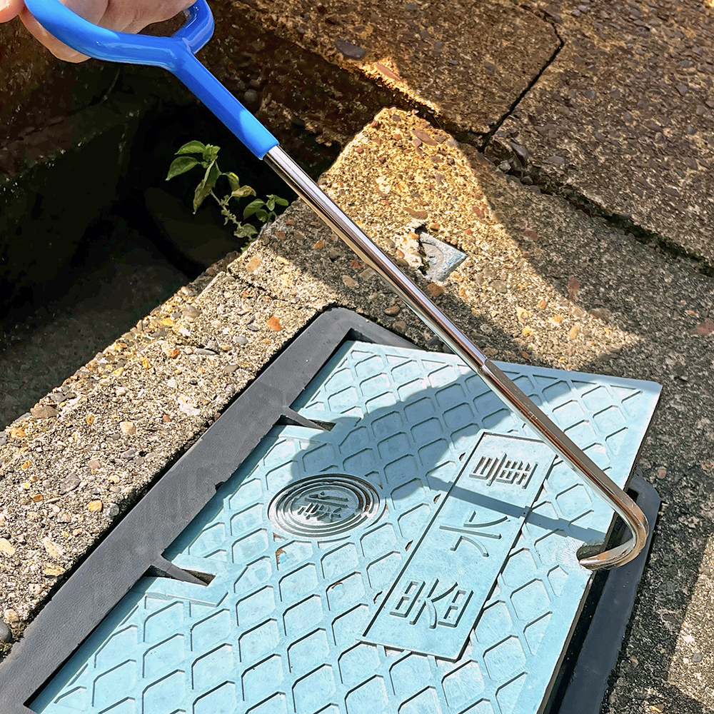 素手では上げにくいグレーチングや、重く上げづらい浄化槽・マンホール等のふたの持ち上げに
