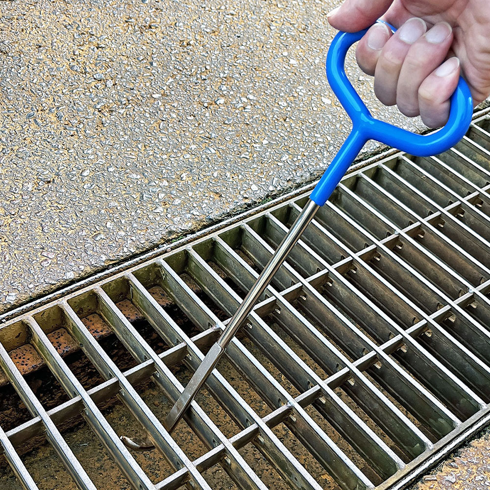 薄く平たいフックは狭く入りづらい穴でも簡単に引っ掛けることが可能。幅の広い一般幅のグレーチングにも使用が可能です。