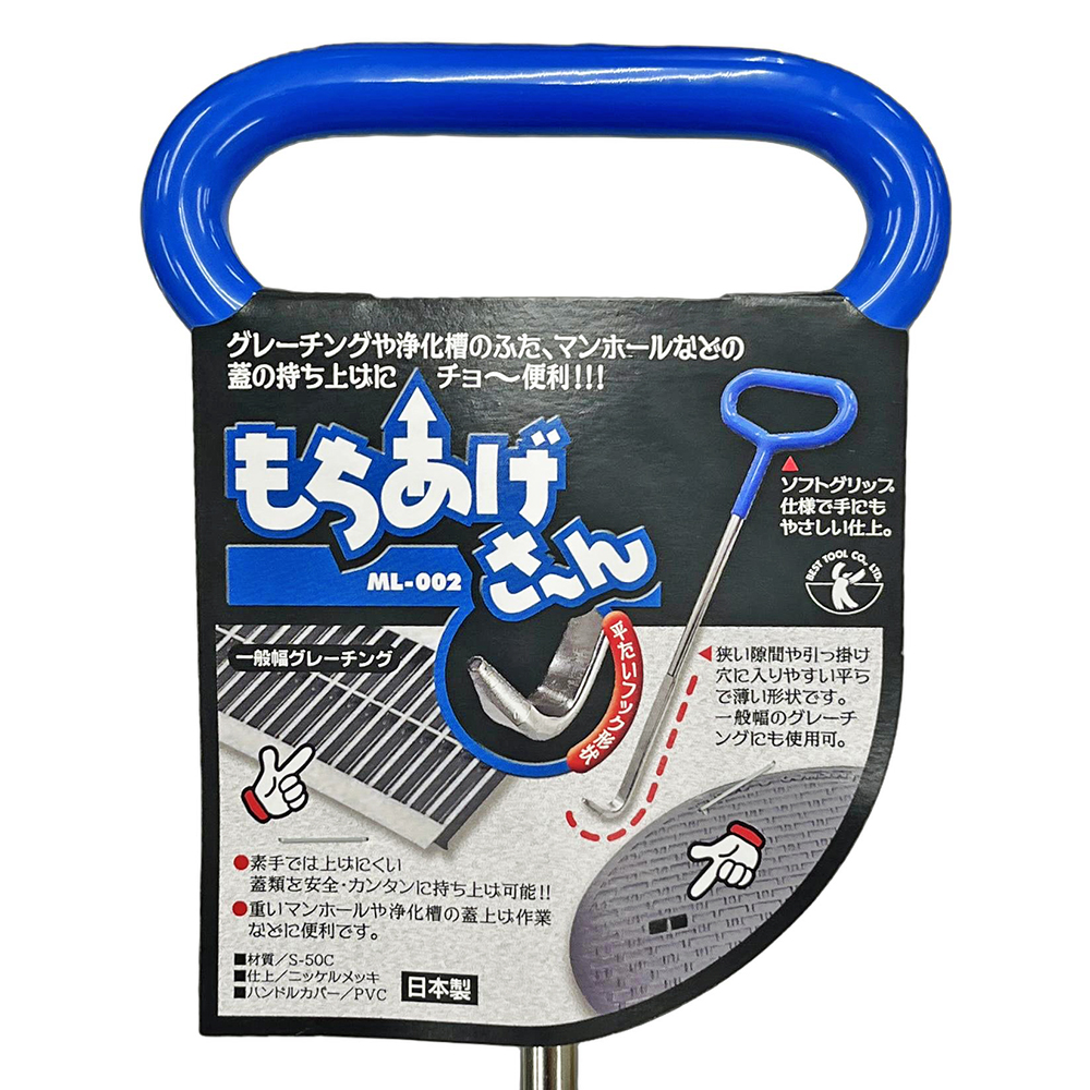 薄く平たくプレス加工で仕上げた”もちあげ君”の兄弟ツール!素手では上げにくいグレーチングや、重く上げづらい浄化槽・マンホール等のふたの持ち上げに大変便利。