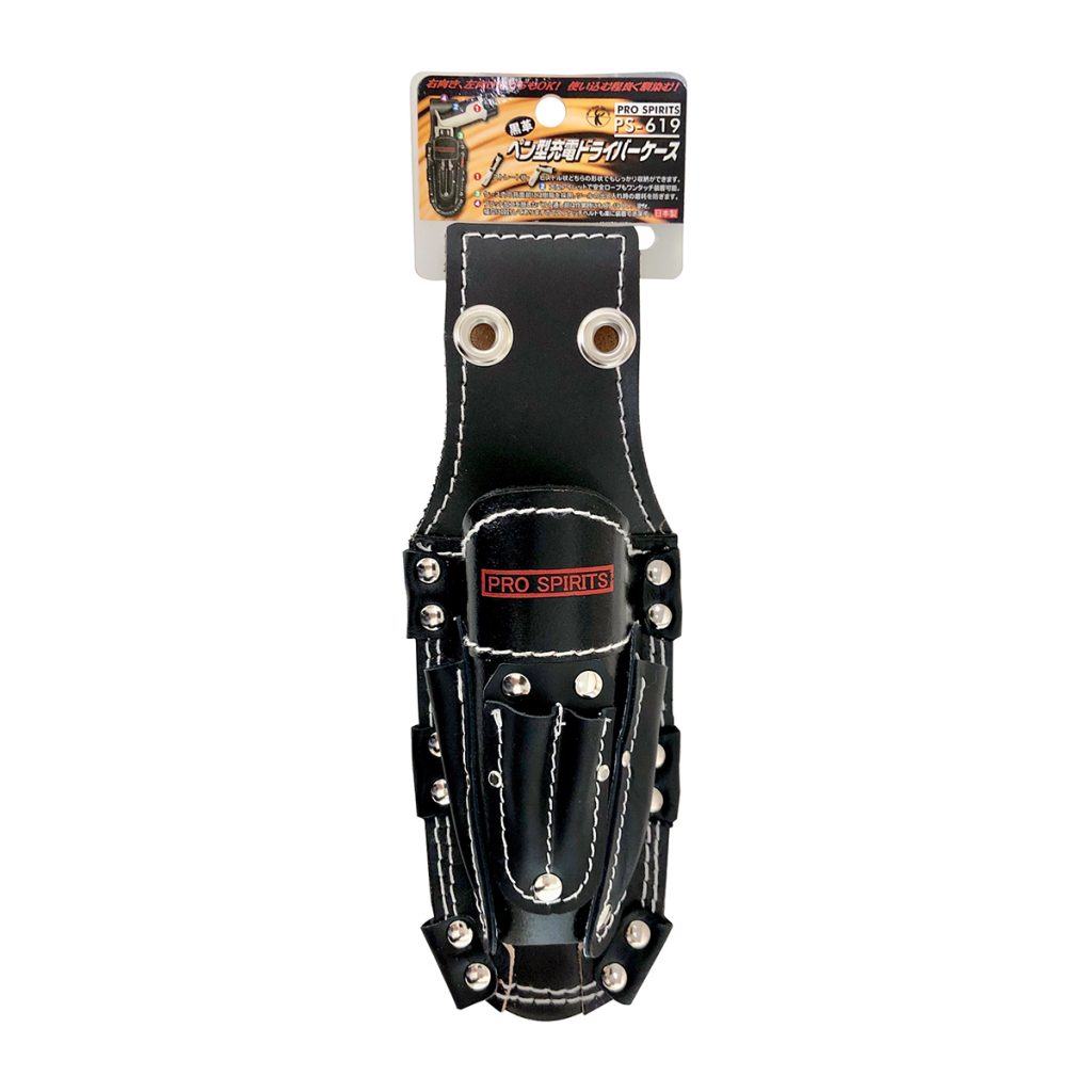 左右どちらでも収納可能にした黒革仕様のペン型充電ドライバーケースです。